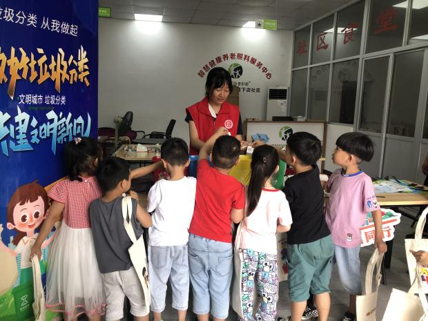 志愿者向参与活动的群众讲解垃圾分类的方法,通过垃圾分类小游戏的方式增加活动的趣味性,让参与者在游戏中学会如何垃圾分类。