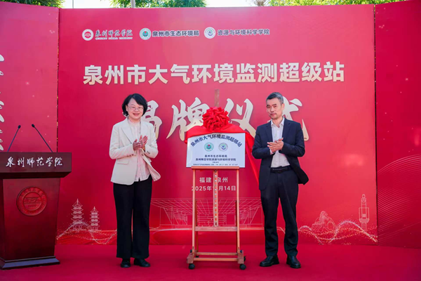 仪式现场,泉州师范学院校长陈昌萍与泉州市生态环境局副局长林庆梅共同为超级站揭牌。该超级站是校地践行习近平生态文明思想的创新实践,通过整合双方资源,将实现监测数据与治理需求的精准对接,推动环保科技成果快速转化,为区域大气环境治理提供可复制、可推广的“泉州方案”。