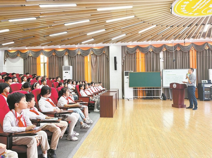 10月30日,由泉州市生态环境局和东南早报联合主办的“生态环境宣传进校园”系列活动走进洛江区第五实验小学。黎明职业大学轻工学院副教授曾飞虎为近百名小记者及学生代表带来了“低碳生活”主题讲座。
