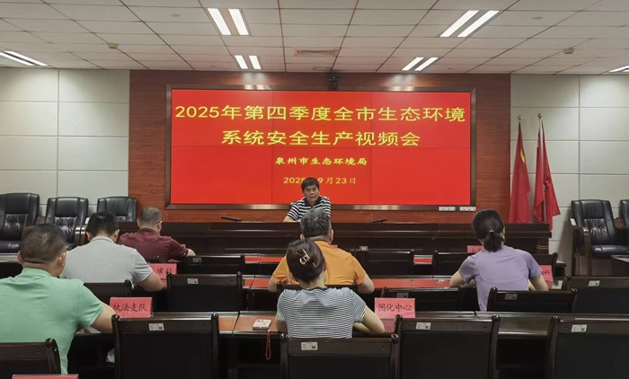 9月23日下午,泉州市生态环境局召开全市生态环境系统安全生产工作视频会议,深入贯彻落实习近平总书记关于安全生产的重要指示精神,全面落实省委省政府、省生态环境厅和市委市政府关于环境安全工作的部署要求,部署台风“桦加沙”防范、国庆节前环境风险排查和第四季度生态环境安全重点工作。