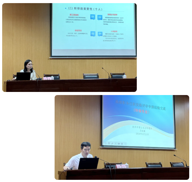 会上,林素卿对工程系列职称申报工作要点作细致说明,包含工程系列职称评审专业目录、申报流程、提交业绩和论文材料新规定等内容和注意事项。王灿煌分享交流高级工程师任职资格评审申报经验,包含申报资格、评审材料准备、业绩材料整理、论文代表作、答辩流程等。参训人员对申报条件、业绩材料准备、论文提交、答辩等疑惑踊跃提问,培训人员就相关问题进行细致解答。
