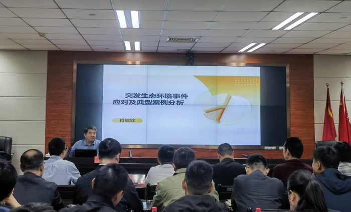 本次培训邀请原省生态环境应急与事故调查中心主任、教授级高工肖毓铨授课。培训课程从依法进行环境安全管理、突发环境事件应急响应程序、现场处置案例剖析等三方面展开,系统厘清环境应急处置的核心逻辑,深入讲解应急处置过程中从溯源排查、源头阻断、工程削污到后期评估的全过程应急处置技术要领与经验教训。通过此次培训,进一步提升了参训人员科学有效应对环境应急事件的能力。