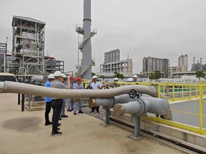 调研组实地察看叶厝村入海排口整治、石化园区公共应急池建设及天辰化学应急池管道互联互通项目,详细了解整治进展与风险防控情况,现场指出问题、明确要求。