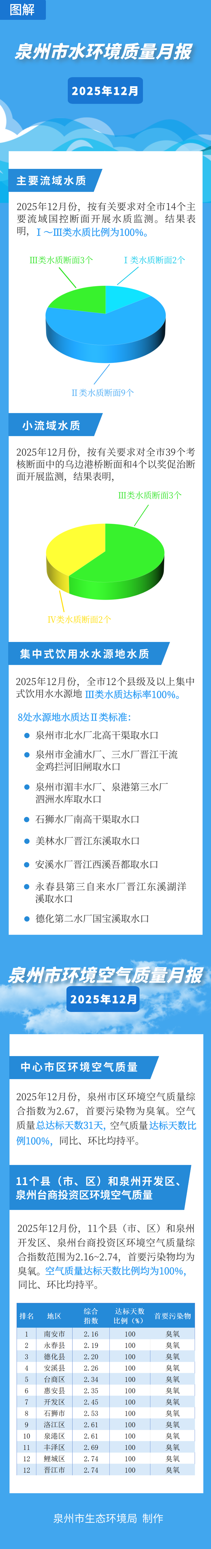 图解 | 2025年12月份泉州市水环境质量、环境空气质量月报